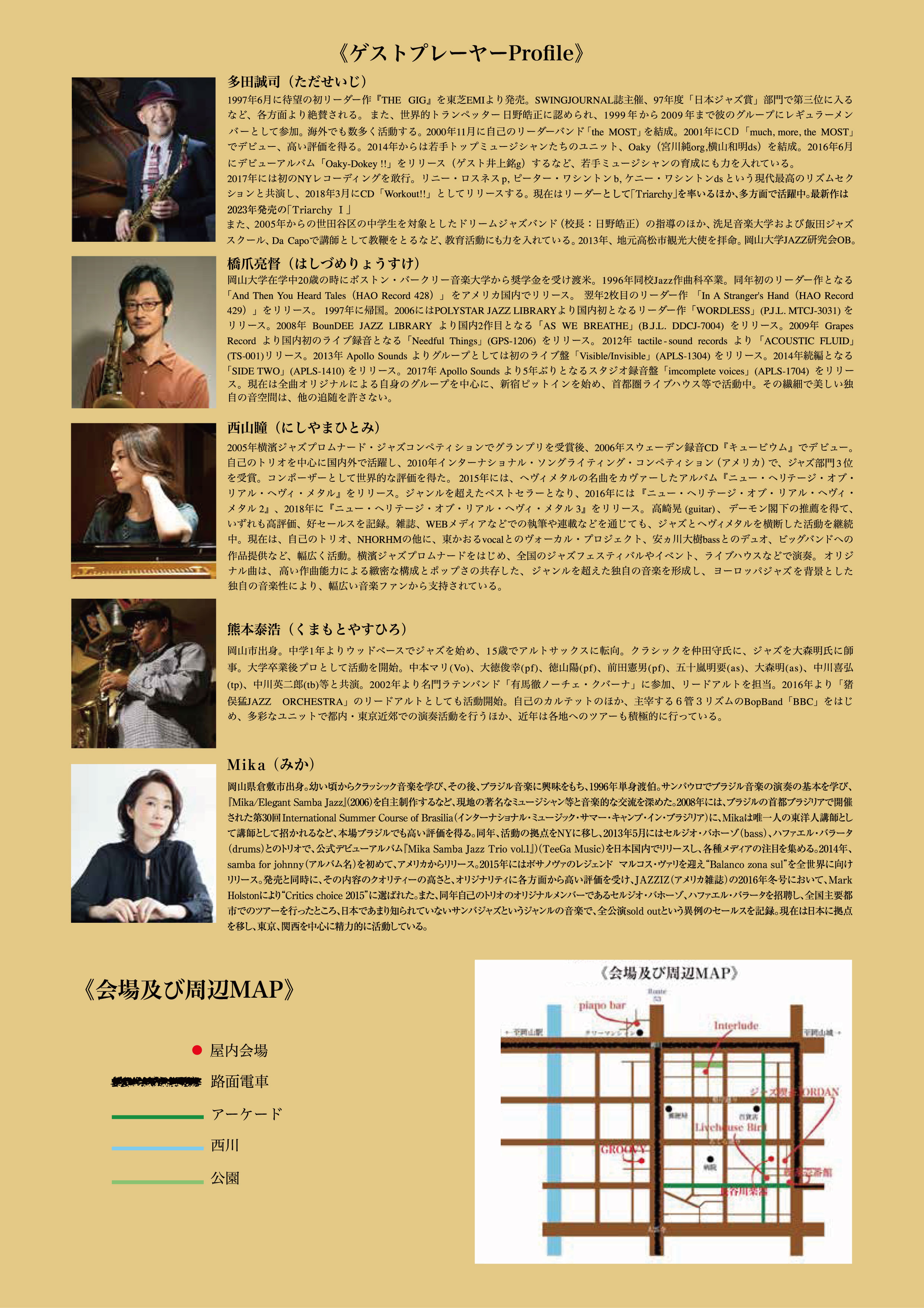 Livehouse Bird・ジャズ喫茶JORDAN・喫茶壱番館・長谷川楽器ウインドパサージュ・服部管楽器・INTERLUDE・PIANO BAR・Jazz Bar GROOVY・岡山城下公会堂 in KOTYAE